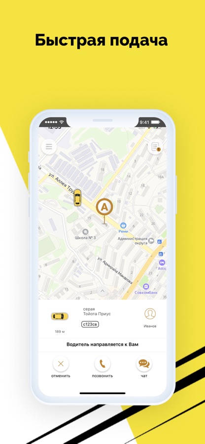 Ты всегда видишь на экране полную информацию о заказе: время подачи, марка, цвет и номер машины, имя водителя.