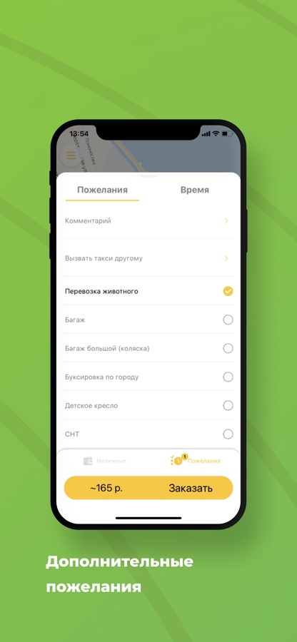 Выбирайте доп. опции: пожелания к заказу, вызов автомобиля для другого человека.