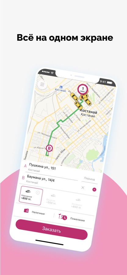 Откройте приложение, укажите адрес и закажите такси, нажав на одну кнопку.