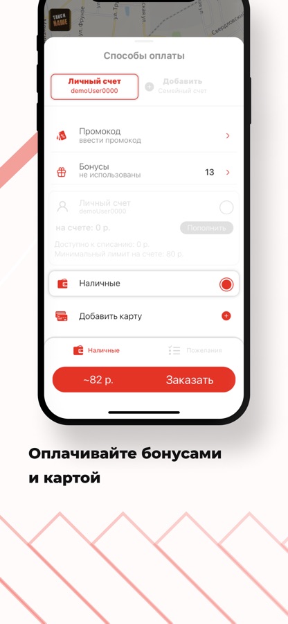 Оплачивайте поездки наличными, картой или накопленными бонусами. Также вы можете оплатить поездку через любое банковское приложение по QR-коду.