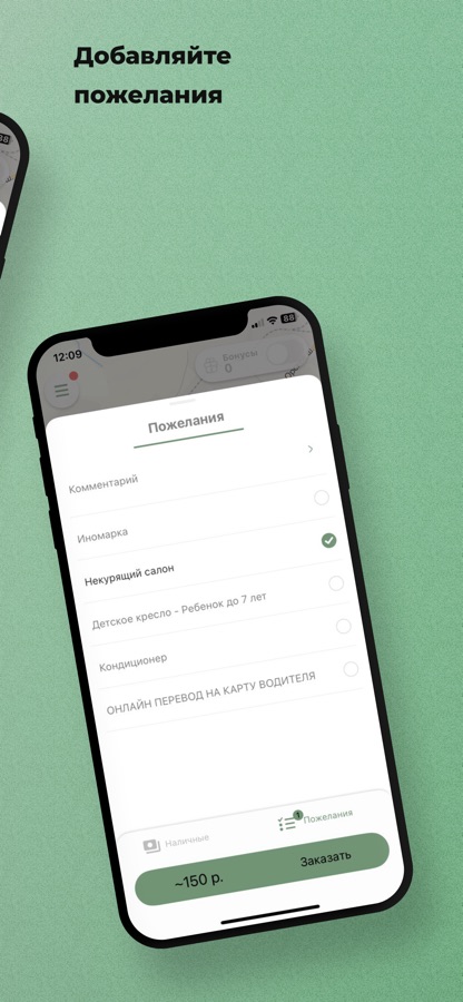 Добавьте к заказу дополнительные пожелания. Например, когда на улице +35 — выберите «кондиционер». Если вы не переносите запах табака — укажите «Некурящий салон», и к вам приедет некурящий водитель.