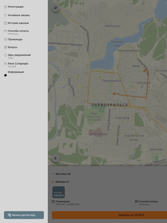 Приложение для онлайн заказа такси в Первоуральске, Ревде, Екатеринбурге, и окрестностях.