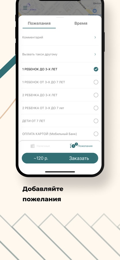 Укажите необходимые пожелания перед заказом (1-2 ребенка, оплата картой, квитанция, клиент с багажом, клиент с грузом).