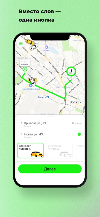 Откройте приложение, укажите адрес и закажите такси, нажав на одну кнопку.