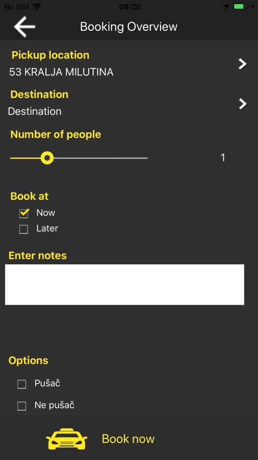 — Taksi Taxi će automatski locirati vašu adresu koristeći GPS u Vašem uredjaju