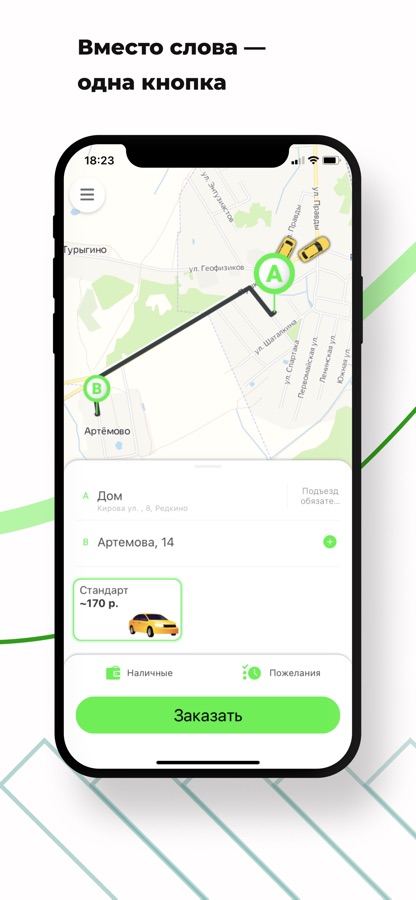 Откройте приложение, укажите адрес и закажите такси, нажав на одну кнопку.