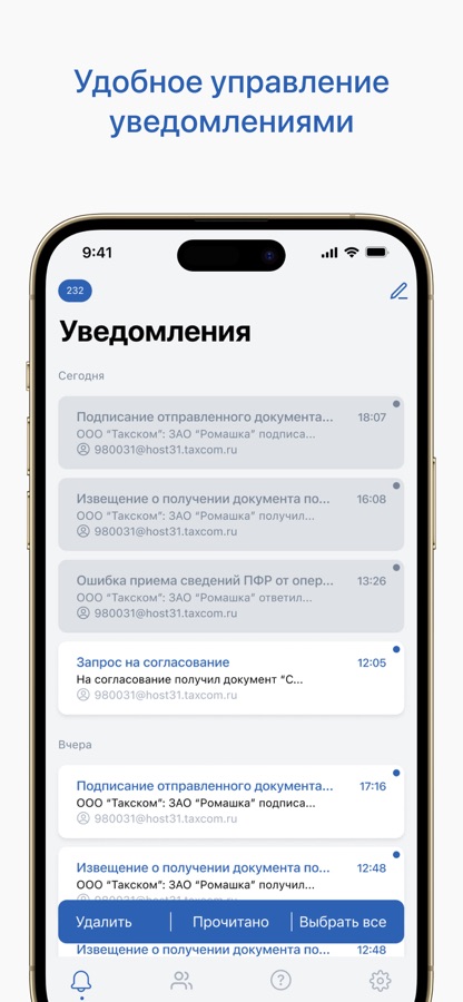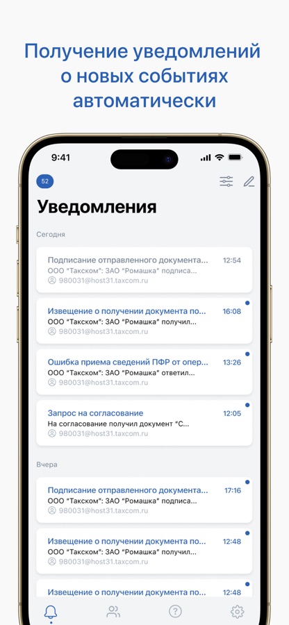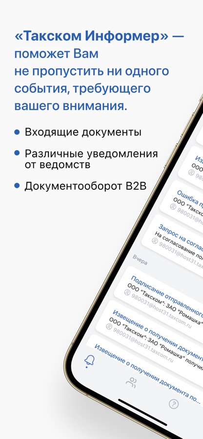 Приложение позволяет оперативно получать уведомления о входящих документах от налоговых инспекций на вашем смартфоне.
