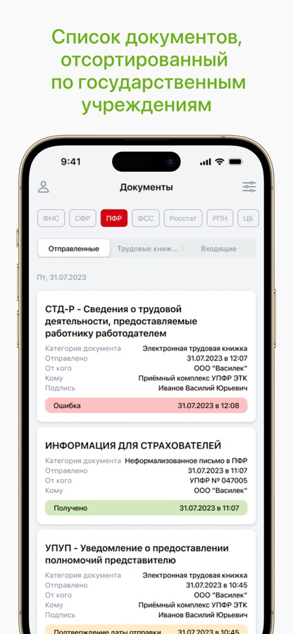 Все изменения статусов отправленной отчётности теперь под рукой. Приложение также уведомит об ответах из государственных органов.