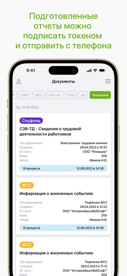 Подготовленные отчеты теперь можно подписать с помощью токена и отправлять прямо с мобильного телефона.