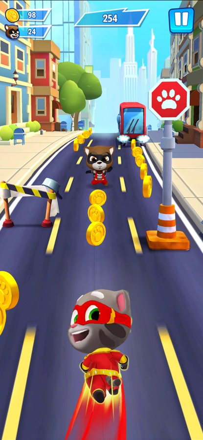 Гонка началась! Добро пожаловать в игру «Говорящий Том: погоня героев» — превосходный бесконечный раннер, где веселье не прекращается!