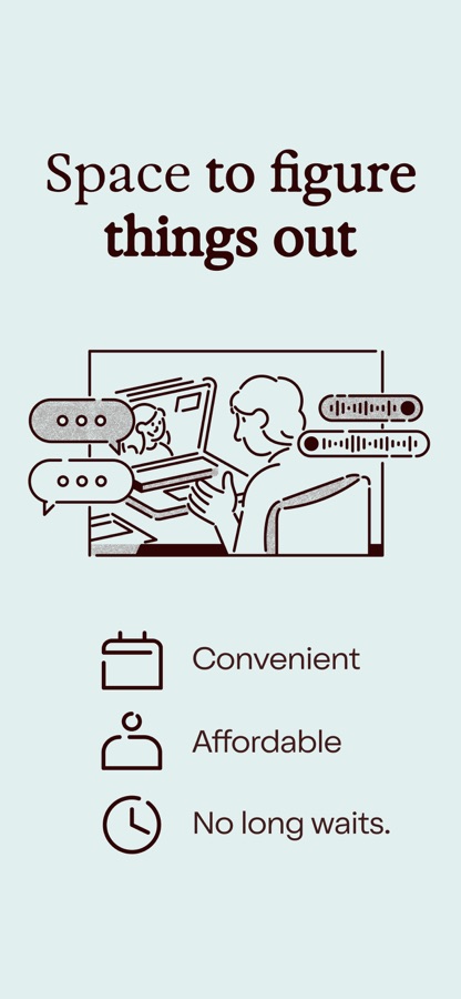 Tell us your preferences for therapy, and match with one of our therapists in your state the same day. Send your therapist unlimited text, audio, picture, or video messages from anywhere, at any time — you’ll hear back at least once a day, 5 days per week.