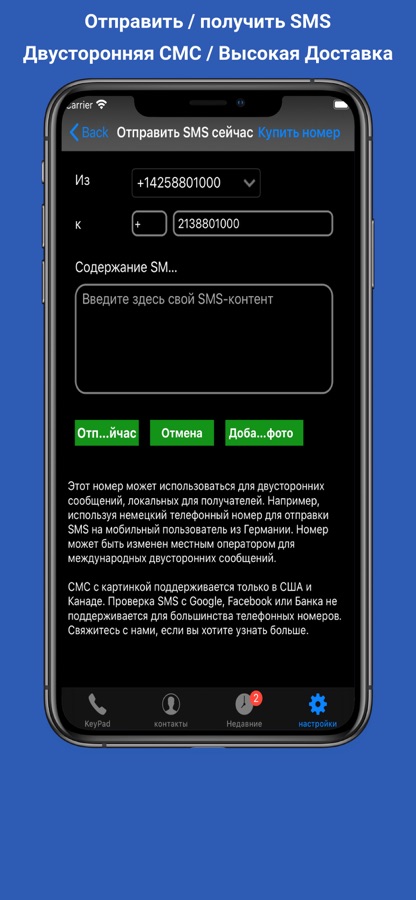 — Покупайте телефонные номера DID из более чем 80 стран или регионов для совершения/приема звонков или отправки/получения текстовых сообщений.