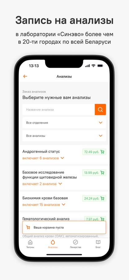 — записаться на сдачу анализов (в сети лабораторий «Синэво»);