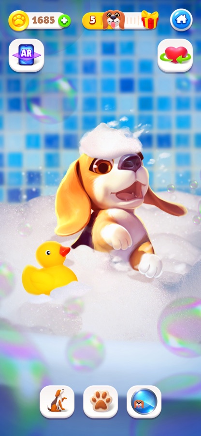 Твоему любимцу нужна ежедневная забота. Корми его, ухаживай и играй с ним. Также ты можешь попробовать 3D-режим и режим дополненной реальности. Разреши использовать камеру и твой щенок появится прямо у тебя дома.