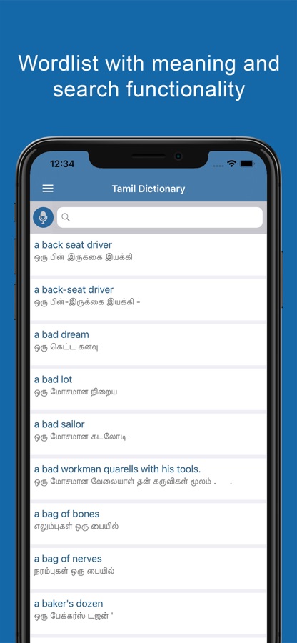 Welcome to Tamil Dictionary and Translator — the easiest way to learn and translate Tamil language fastly within your iPhones and iPads.