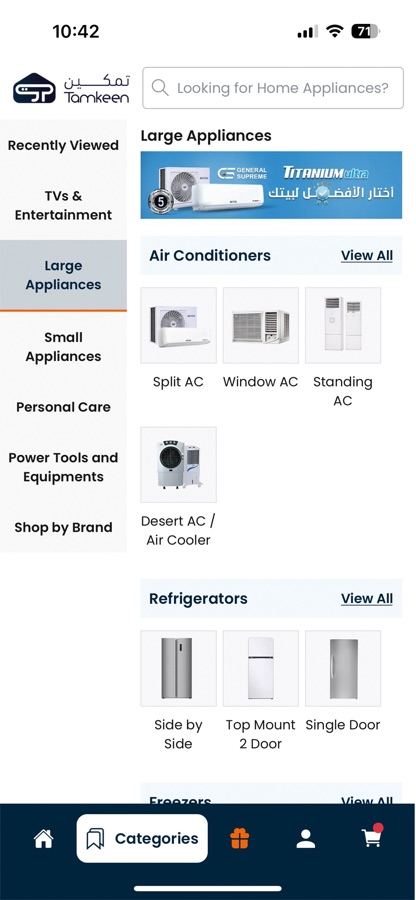 مرحبًا بكم في متجر تمكين ، متجر إلكتروني رائد للأجهزة المنزلية والإلكترونية مقره في المملكة العربية السعودية. نحن نقدم مجموعة واسعة من الأجهزة المنزلية الكبيرة والصغيرة ، والإلكترونيات ، ومكيفات الهواء ، التي تغطي جميع العلامات التجارية الكبرى.
