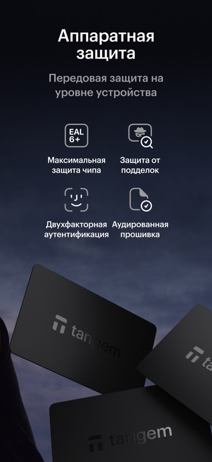 Tangem не хранит, не имеет доступа и не контролирует ваши средства или приватные ключи. Вы подтверждаете каждую транзакцию с помощью смартфона с поддержкой NFC.