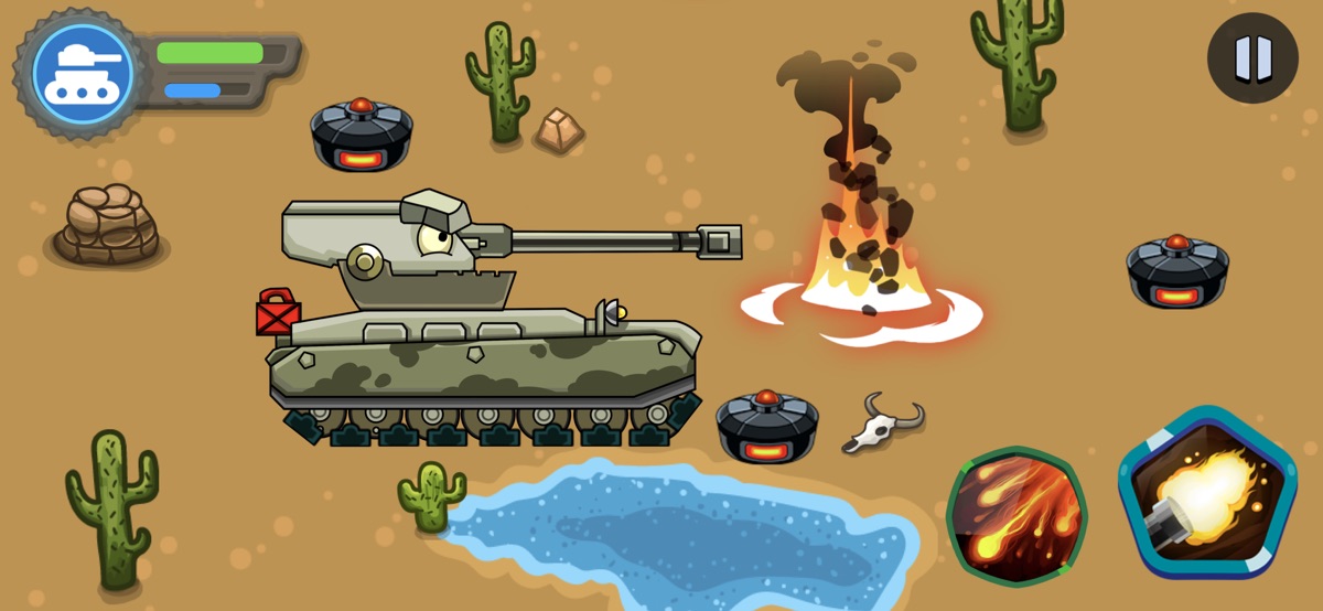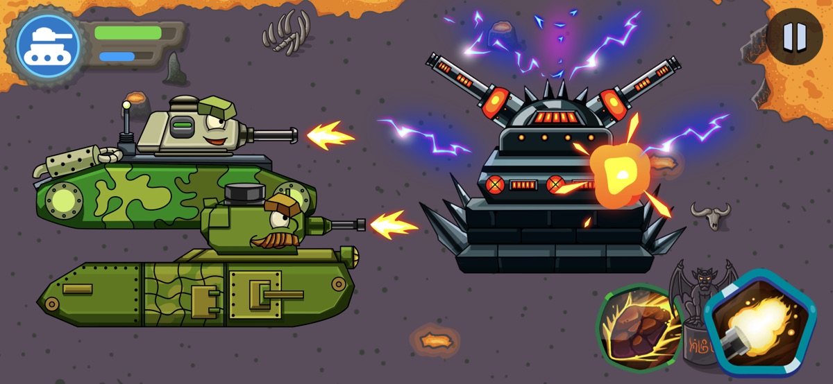 Полный вперед! Классная игра про мультяшные танки — выбери свой танк и пройди все уровни. Новая и интересная игра в которой нужно прокачивать танки и выигрывать битвы. В каждом бою можно заработать монеты, на которые можно улучшать танки и открывать новые выполняя секретные задания.