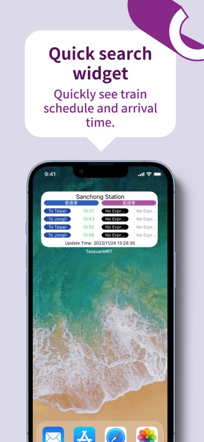 Configure quick lookup stations and quickly see timetable in the widget page. Stop missing trains.
