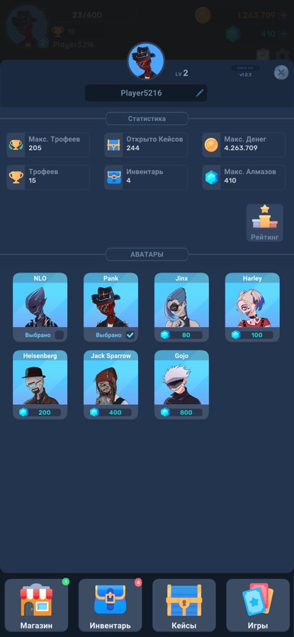 • Много красивых аватарок для игрока на любой вкус