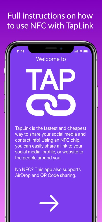 TapLink is the fastest and cheapest way to share your social media and contact info! Using an NFC chip, you can easily share a link to your social media, profile, or website to the people around you. No NFC? This app also supports AirDrop and QR Code sharing.