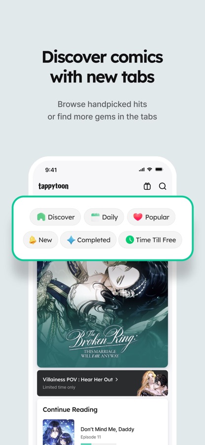 * Time Till Free, Tickets is available only on select eligible comics/chapters. Eligibility may change at Tappytoon’s discretion.
