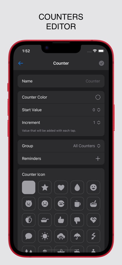 Удобное приложение для создания настраиваемых счетчиков подсчета нажатий. С ним вы сможете отслеживать прогресс и сохранять историю за каждый день. Доступно разделение счетчиков на группы, добавление заметок и ввод произвольных значений с выбором даты.