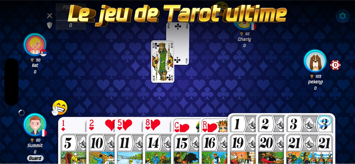 Tarot is a contract game played with 3, 4 or 5 players. The tricks won earns you points. Are you going to fulfill your contract?