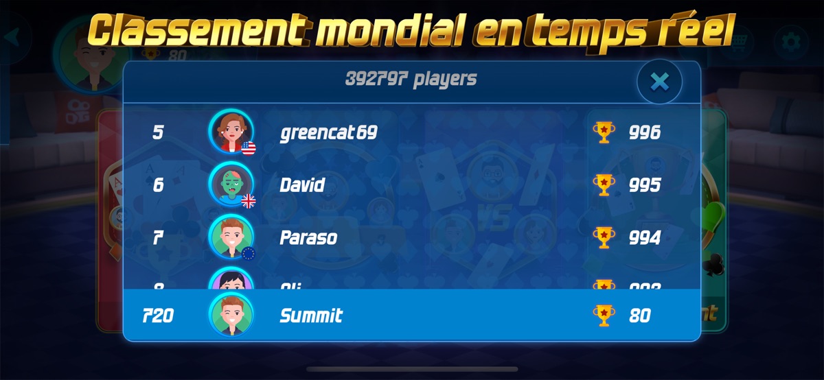 Play Tarot game wherever you are with Tarot online. Play alone against players controlled by a high level artificial intelligence with a realistic behavior, or compare yourself with other players from around the world.