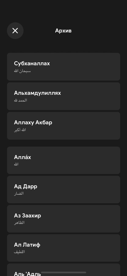 • Возможность считать зикры, не глядя на экран, благодаря динамическому прикосновению.