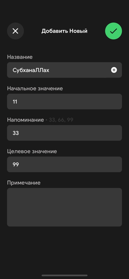 • Установите целевое значение и напоминание значение для счетчика тасбиха.