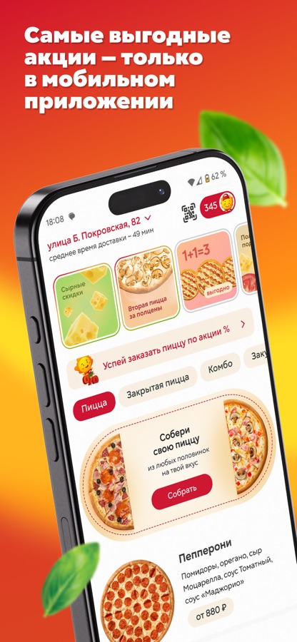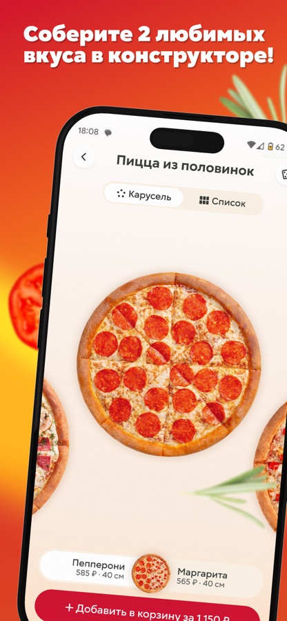 С новым приложением, мы переносим удобство заказа пиццы на новый уровень. Всего в несколько касаний экрана вы можете выбрать свою любимую пиццу, добавить любые добавки и соусы, и оформить заказ. Но это еще не все!