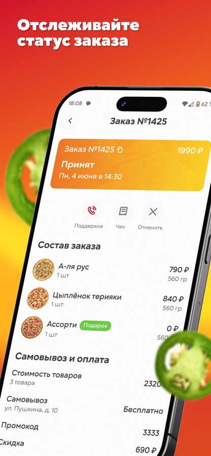 Это не просто приложение для заказа пиццы, это ваш персональный гастрономический помощник, который заботится о том, чтобы процесс заказа был максимально прозрачным и удобным для вас. Мы берем на себя всю ответственность за ваш заказ, позволяя вам расслабиться и насладиться процессом ожидания вашей любимой пиццы.