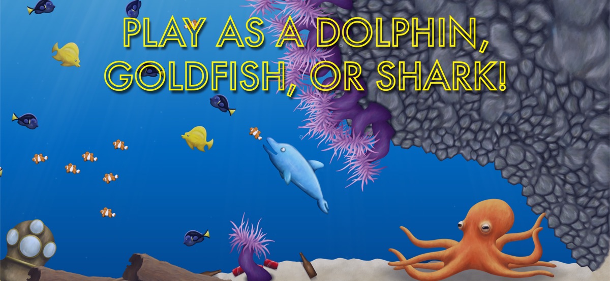 In addition to the goldfish, you can also play as a hungry dolphin and a ravenous shark. The dolphin starts off as an overworked aquarium star, forced to jump through flaming hoops for food. He escapes from captivity by eating his way through the aquarium and taking revenge on his trainer. The shark is the final playable character, an artificial fish created by scientists to save Earth’s oceans. It uses self-replicating nano technology to consume everything in its path and convert their matter into its own. There’s no telling how big this shark will get.