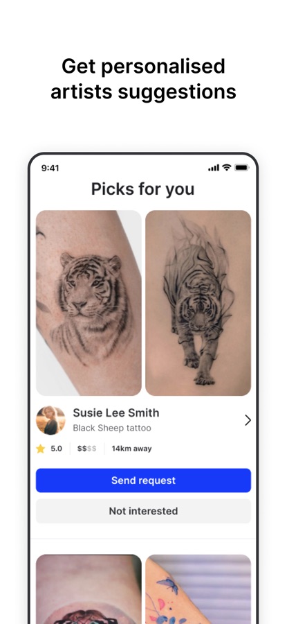 You’ll receive tailored artist recommendations in your chosen location. And once you select the artist you prefer, you can message them to discuss ideas and placements before setting up an appointment in the app.