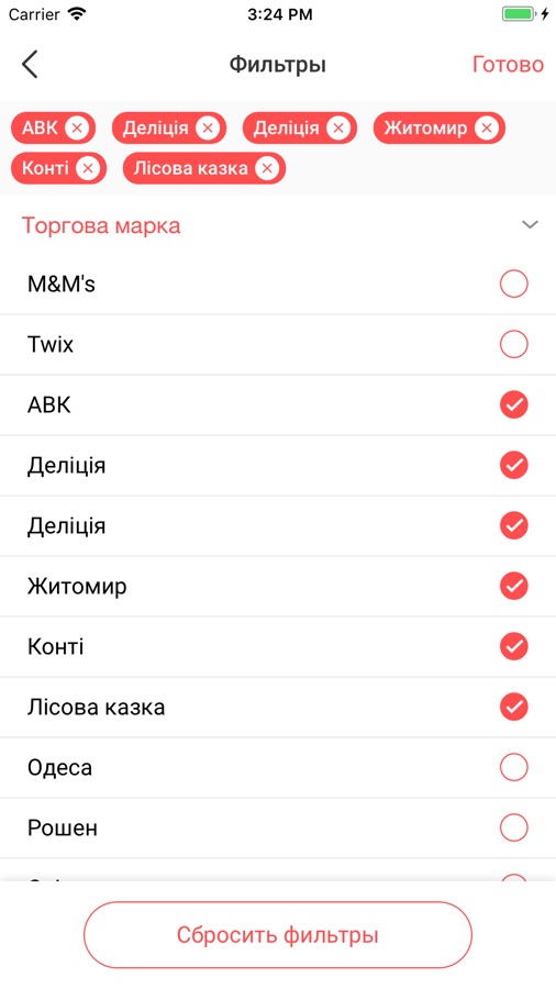 В приложении представлено более 50 тыс. самых распространённых товаров общего потребления, при этом ассортимент постоянно обновляется.
