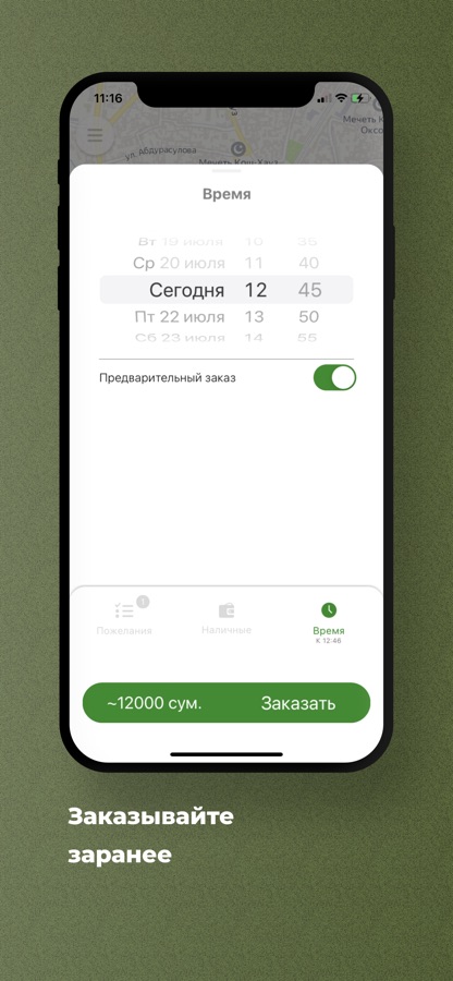 Нужен автомобиль к определенным времени и дате? Закажите его заранее через приложение, и в назначенное время такси будет ждать вас у подъезда.