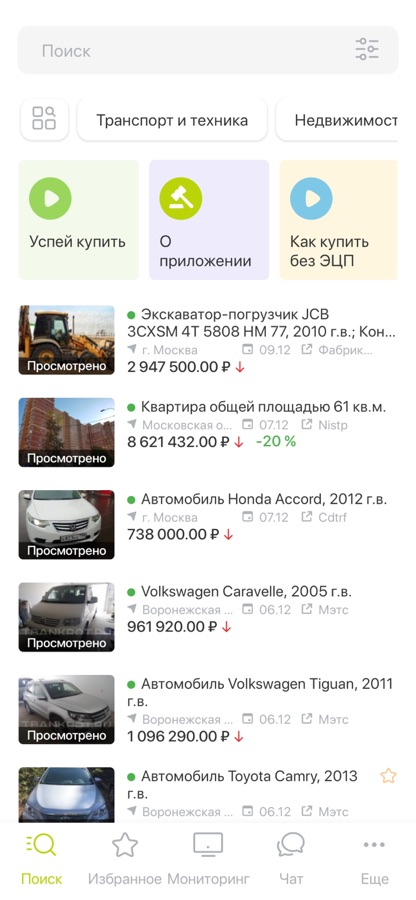 • Автоматически отслеживать новые интересные лоты по заданным поисковым фильтрам, в том числе с получением персонального уведомления.