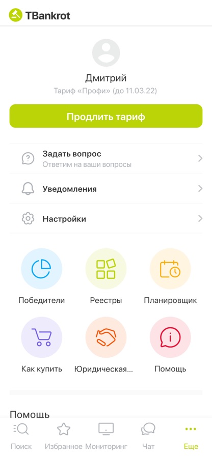 Все функции «TBankrot» полностью доступны в бесплатной версии.
