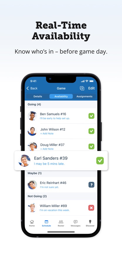 • Effortless Scheduling: Run the season, not the calendar. Get one view for all practices, games, and automatic calendar syncs.
