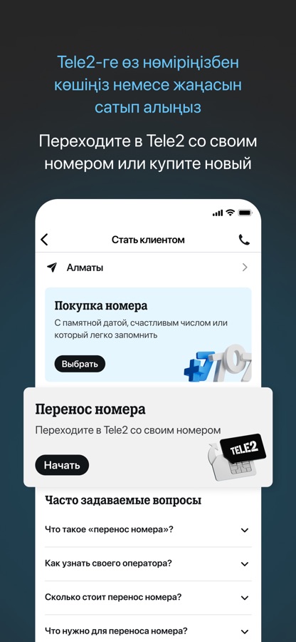 • Өз нөміріңізбен біздің желіге өтіңіз немесе жаңасын сатып алыңыз