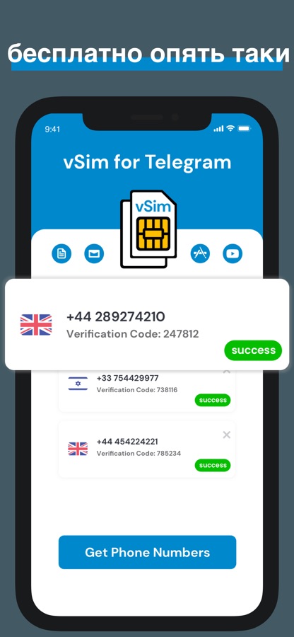 1. Используйте приложение «Виртуальные номера», чтобы получить номер телефона, совместимый с Telegram и Telegram Business.