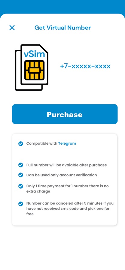 • Приложение Virtual Numbers предоставляет чистые, частные, неповторяемые телефонные номера, которые гарантированно работают с Telegram.