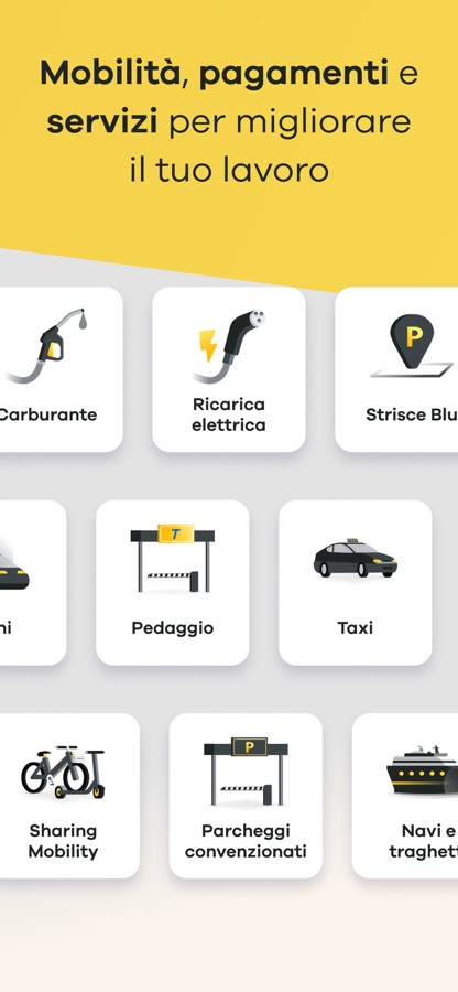TBusiness è un’applicazione realizzata da Telepass Spa e riservata ai dipendenti invitati dalla propria azienda. I servizi inclusi dipendono dal pacchetto scelto dall’azienda.