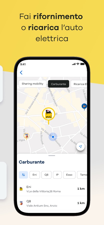 — Trovare in app le stazioni di servizio e le colonnine di ricarica convenzionate più vicine