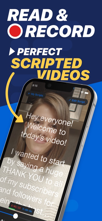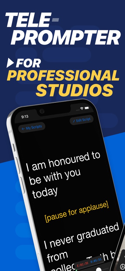 • Use your device camera to record your scripts as you read from the Teleprompter