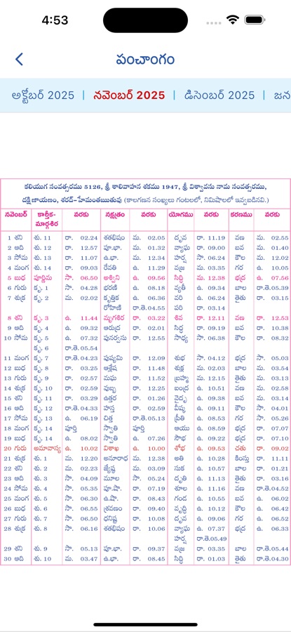 * Panchangam Details – Know the Tithi, Yog, Nakshatra, and Karan for each day