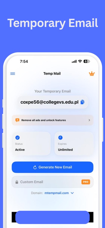 With this app you can create Temporary Email and instantly, generate disposable temporary email addresses and immediately receive emails, including photos or any other attachments that content your email Introducing mTempMail: the ultimate solution for temporary email needs. With mTempMail, creating disposable email addresses is a breeze, empowering you with unmatched convenience. Here’s why mTempMail stands out:Unlimited temporary email addresses: Generate as many as you need, instantly.Swift setup: Get your disposable email addresses in seconds, ensuring prompt access.Seamless usability: Utilize your temporary email addresses hassle-free, whenever you need them.Exceptional features: Enjoy a range of standout functionalities tailored to meet your temporary email needs effortlessly.