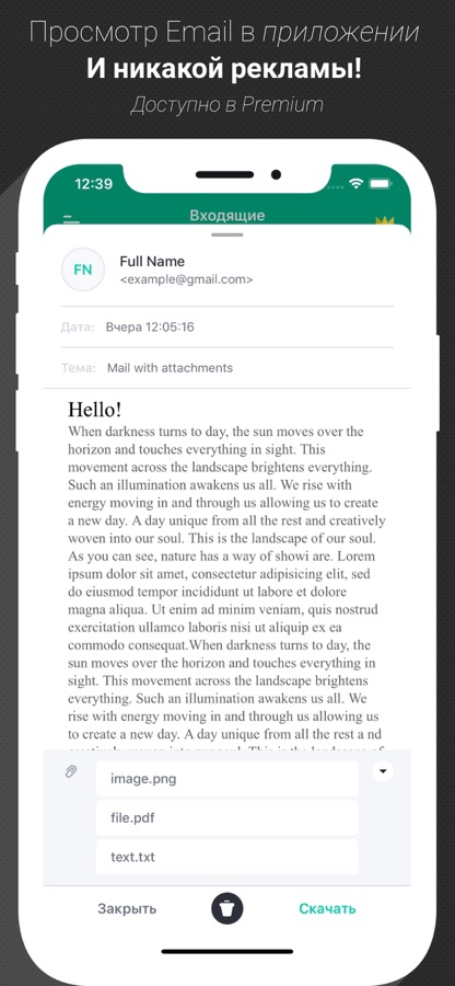 ● Получайте одно или несколько вложений, которые можно скачать из почты