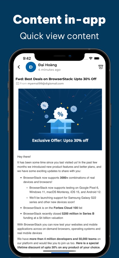 To avoid that and keep your inbox clear, use an instant temp mail address in our app to receive any incoming messages.